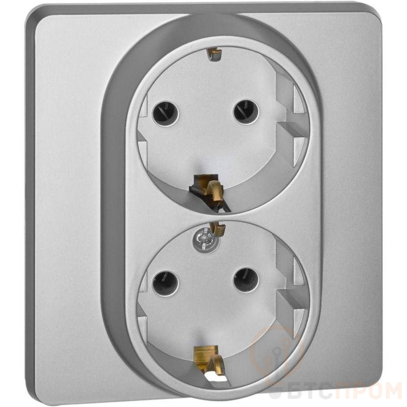 Розетка двойная с заземлением для скрытого монтажа Inspiria, цвет "Алюминий", максимальный ток 16А, напряжение ~250В, максимальная мощность 3680Вт, винтовые зажимы. Применяется для присоединения однофазных электрических потребителей к сети переменного тока в зданиях с проводкой с заземлением (с защитным проводником). Позволяет компактно разместить две розетки в одном установочном месте.