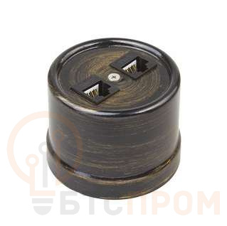 Розетка компьютерная 2-м ОП Лизетта RJ45 10А IP20 ретро кат.5E ABS-пластик бронз. Bironi B1-302-25 фото в каталоге от BTSprom.by