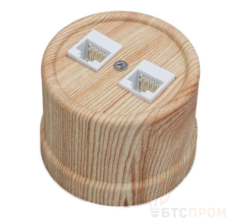 Розетка компьютерная 2-м ОП Лизетта RJ45 10А IP20 ретро кат.5E ABS-пластик карельская сосна Bironi B1-302-13