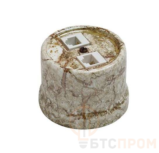 Ключевая особенность — использование элегантной накладки из керамики под мрамор, которая не только придает изделию аутентичный и дорогой вид, но и отличается высокой прочностью и долговечностью. Степень защиты IP20 указывает на то, что розетка предназначена для использования исключительно внутри сухих помещений.