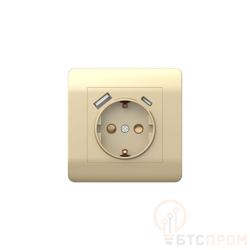Розетка NEW3-E 16А с заземл. защ. шторки с 2-мя заряд. устройствами USB A+C 5В/2.1А шампань CHINT 431453