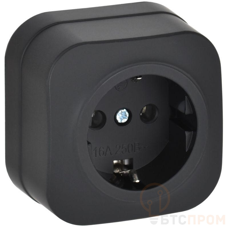 –Розетка ОП GLORY РС20-3-ХЧм 16А с заземл. без защ. шторок черн. матов. IEK ERH11-K02M-16