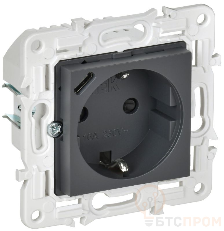 Розетка SKANDY 18Вт 16А с заземл. защ. шторки с USB C SK-R17T титан IEK SK-R14-16-U14-018-K48 фото в каталоге от BTSprom.by