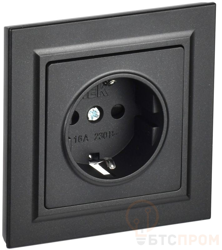 –Розетка СП BRITE РСР14-1-0-БрЧ 16А в сборе с заземл. защ. шторки черн. IEK BR-R14-16-K02-F