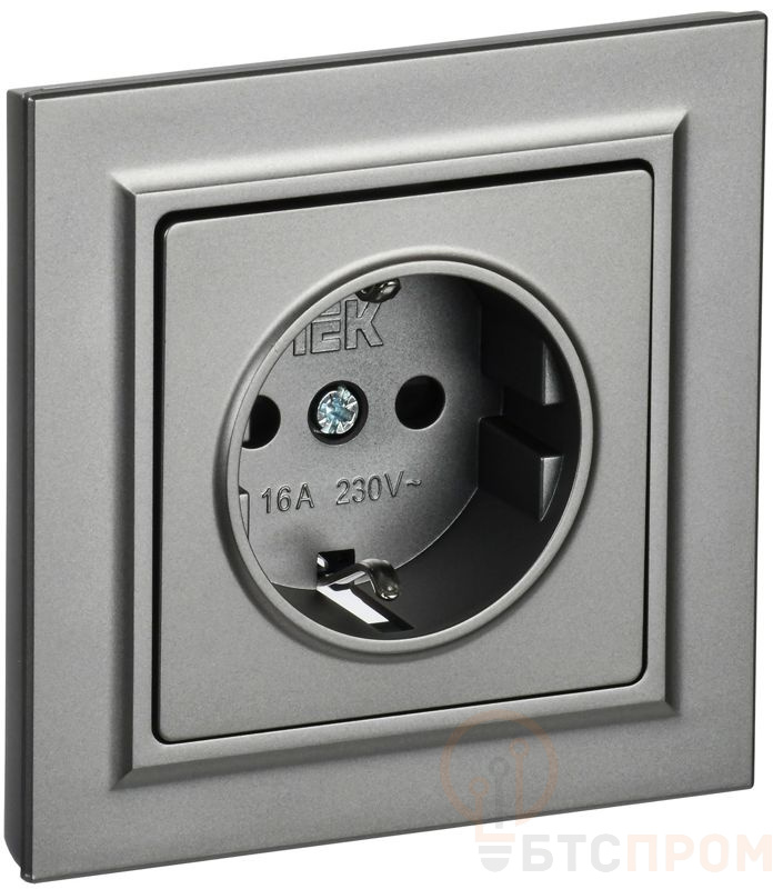 Розетка СП BRITE РСР14-1-0-БрС 16А в сборе с заземл. защ. шторки сталь IEK BR-R14-16-K46-F фото в каталоге от BTSprom.by