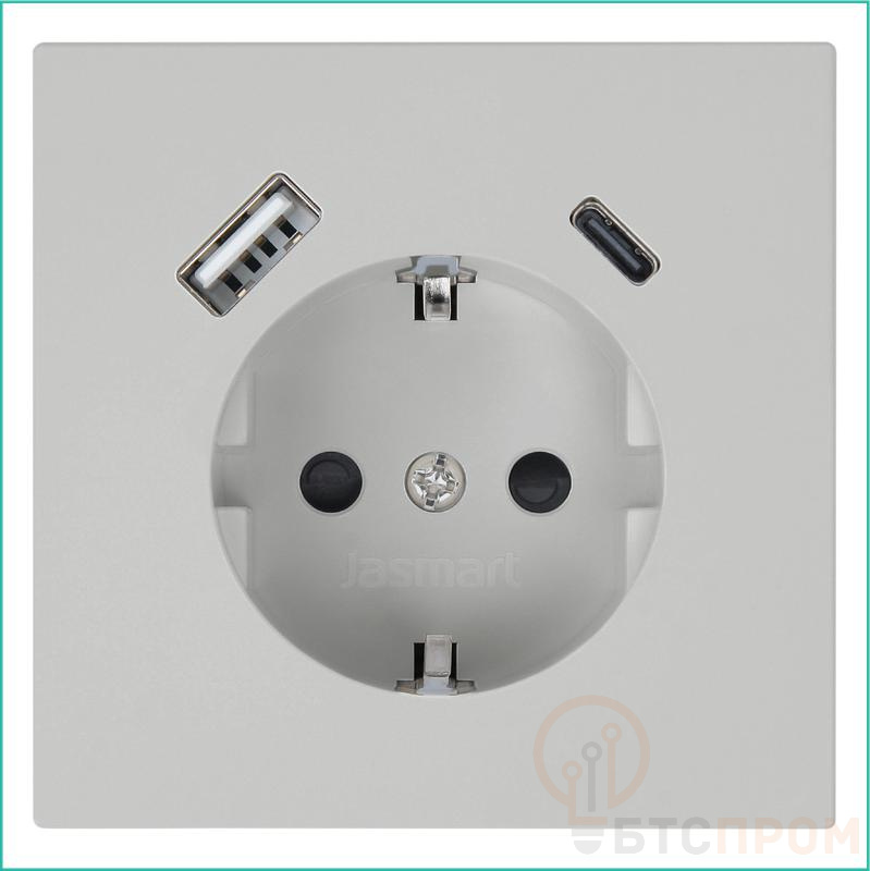 Розетка СП FD Shuko 16А с заземл. защ. шторки с 2-мя заряд. устр. USB тип A+C 25Вт механизм тауп матов. soft touch Jasmart FD5501USB-25PTM