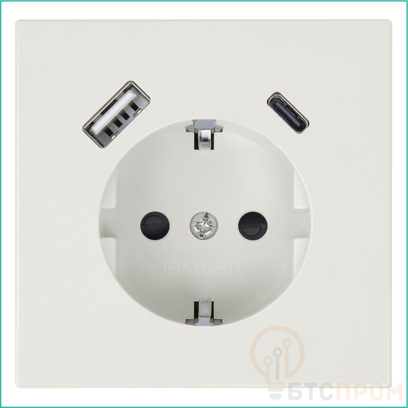 Розетка СП FD Shuko 16А с заземл. защ. шторки с 2-мя заряд. устр. USB тип A+C 25Вт механизм сахара Jasmart FD5501USB-25SH