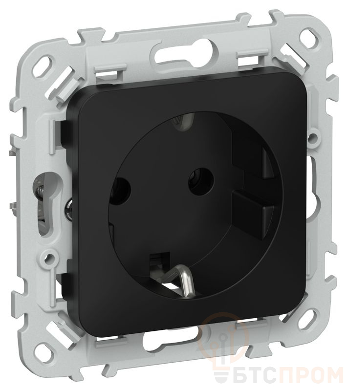 Розетка СП FLITE РС11-0-ФлЧ 16А с заземл. без защ. шторок механизм черн. IEK FI-R11-16-K02 фото в каталоге от BTSprom.by