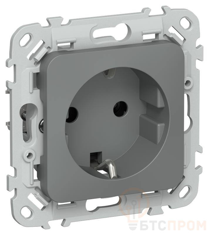 Розетка СП FLITE РС11-1-ФлМА 16А с заземл. без защ. шторок безвинтовое крепление механизм мокрый асфальт IEK FI-R11-16-1-K80