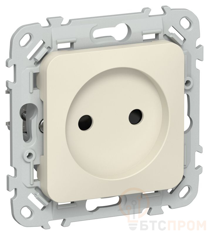 Розетка СП FLITE РСш01-1-ФлСл 10А без заземл. с защ. шторками безвинтовое крепление механизм сливочный IEK FI-R13-10-1-K86