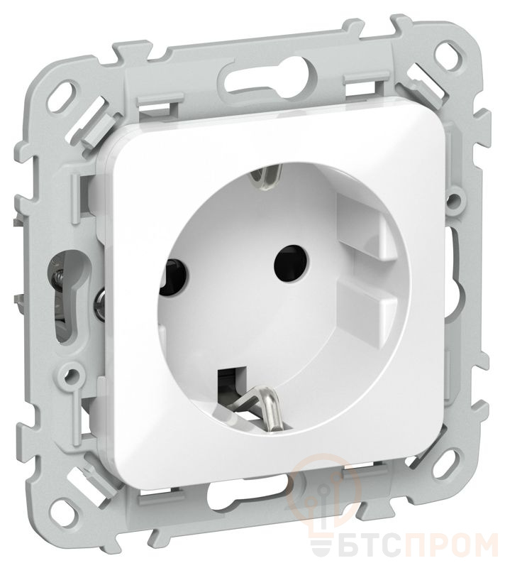 Розетка СП FLITE РСш11-1-ФлБ 16А с заземл. с защ. шторками безвинтовое крепление механизм бел. IEK FI-R14-16-1-K01