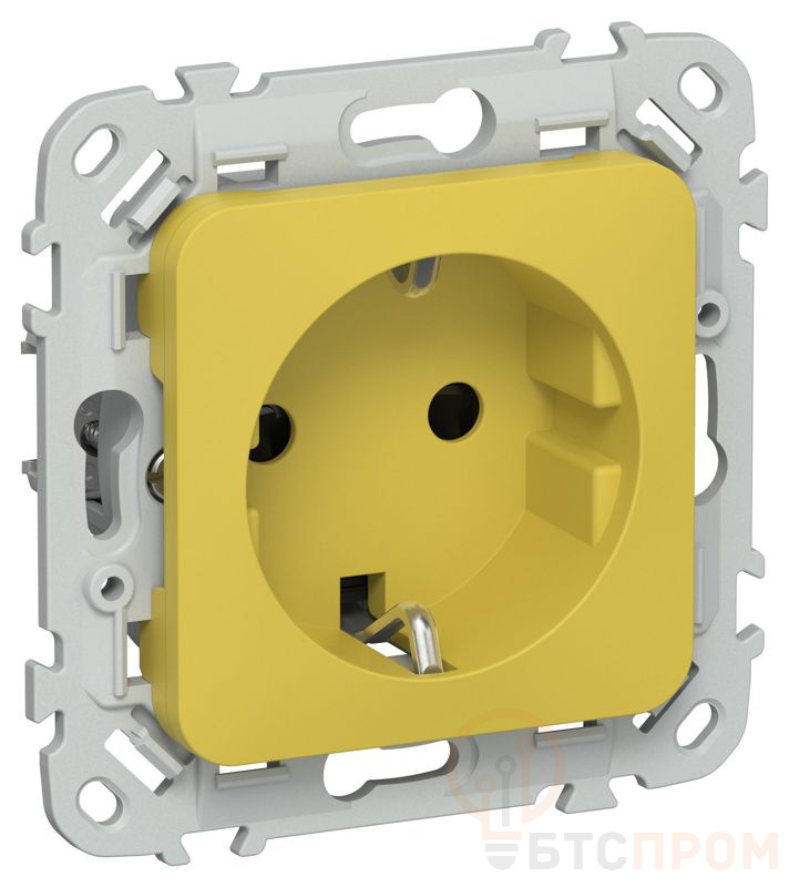 Розетка СП FLITE РСш11-1-ФлЖК 16А с заземл. с защ. шторками безвинтовое крепление механизм желт. карри IEK FI-R14-16-1-K44