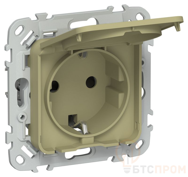 Розетка СП FLITE РСшкр11-0-44-ФлО 16А IP44 с заземл. с защ. шторками и крышкой механизм олив. IEK FI-R16-16-44-K26
