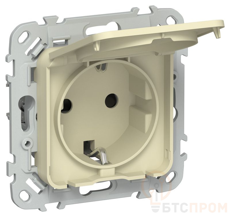 Розетка СП FLITE РСшкр11-1-44-ФлН 16А IP44 с заземл. с защ. шторками и крышкой безвинтовое крепление механизм навахо IEK FI-R16-16-1-44-K87