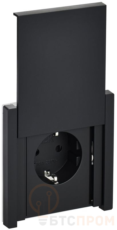 Розетка СП FORTE&PIANO 16А IP44 FP121 с заземл. защ. шторки с крышкой винт. крепл. черн. IEK FP-R16-16-44-K02