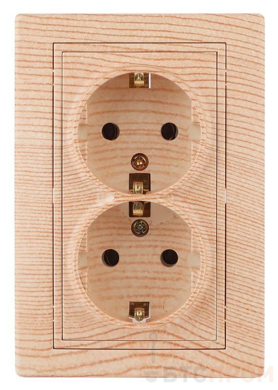 Розетка двойная 2-я серии Intro Plano скрытой установки цвет сосна 1-205-11. Номинальные характеристики 16А 250В. Розетка выполнена из керамики, укомплектована одноместной рамкой, оснащена винтовыми клеммами. Клеммы с двумя отверстиями позволяют соединять соседние розетки шлейфом. Установка в подрозетник производится как на монтажные лапки, так и на винты.