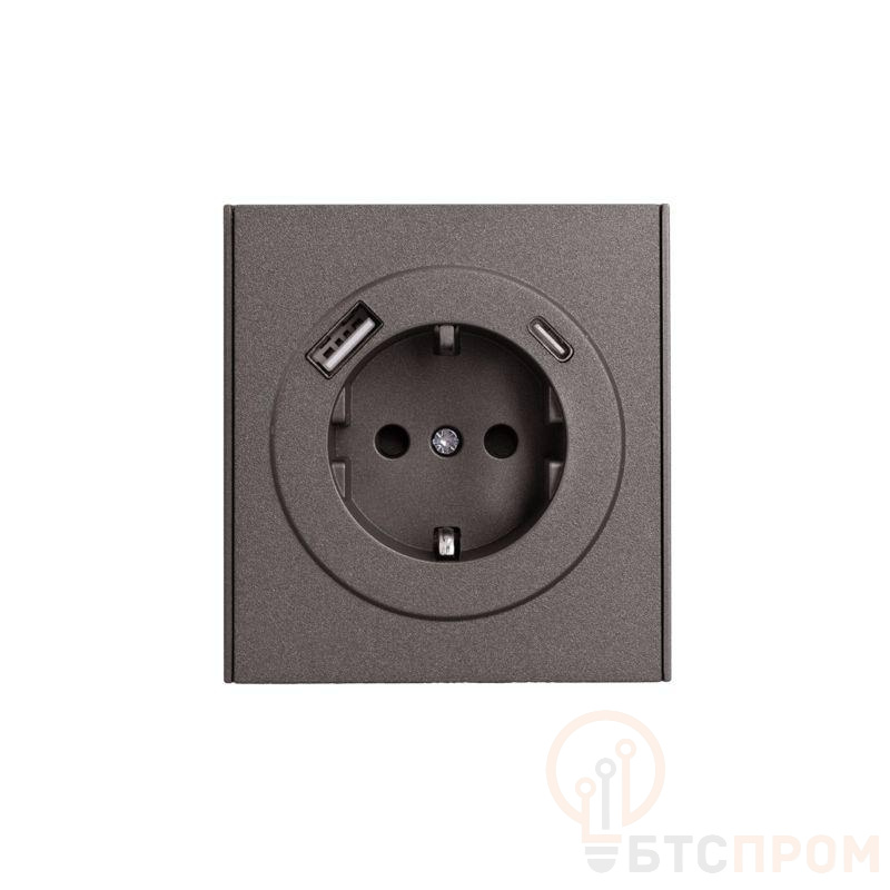 Розетка 1-м СП STRONG MIELE 16А с заземл. защ. шторки с USB A+C быстрой зарядки 5В/3А графит Kranz KR-78-0704-6