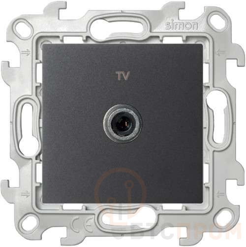 –Розетка телевизионная одиночная TV СП Simon 24 IP20 механизм графит Simon 2450477-038