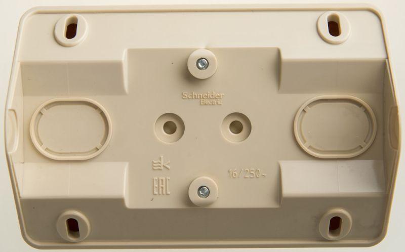Розетка Systeme Electric (ранее Schneider Electric) ЭТЮД (кремовый, открытой установки) двухместная угловая, без шторок и заземления предназначена для применения в сетях до 250В, на ток до 16А. Двухместная розетка позволяет подключить два устройства в одном месте. Ее конструкция позволяет установить розетку в угол помещения. Сделано в России.