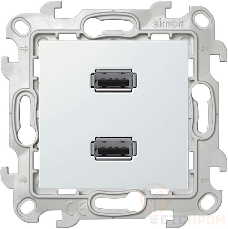 Розетка USB 2-м СП Simon 24 IP20 коннектор механизм бел. Simon 2411090-030 фото в каталоге от BTSprom.by