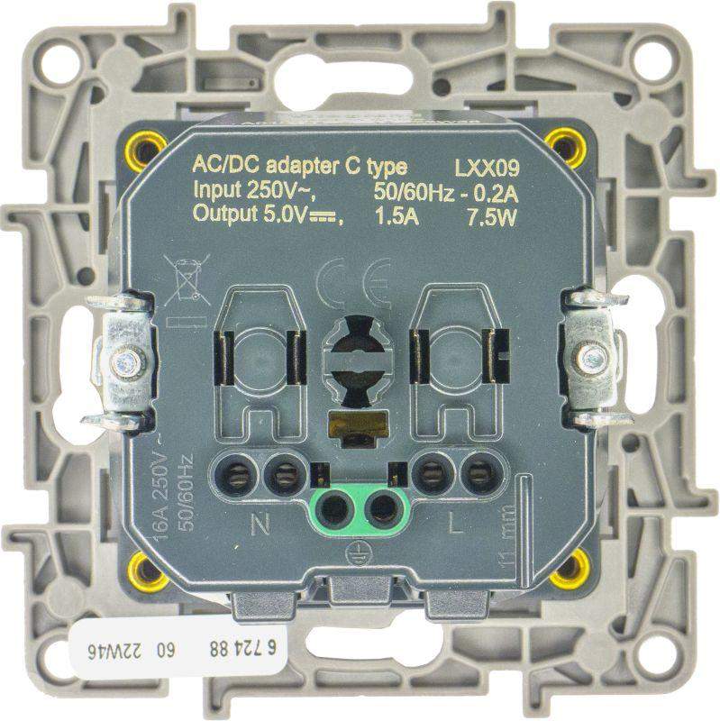 –Розетка USB C Etika 16А 250В 1500мА 7.5Вт с заземл. защ. шторки безвинт. зажимы алюм. IEK 672488