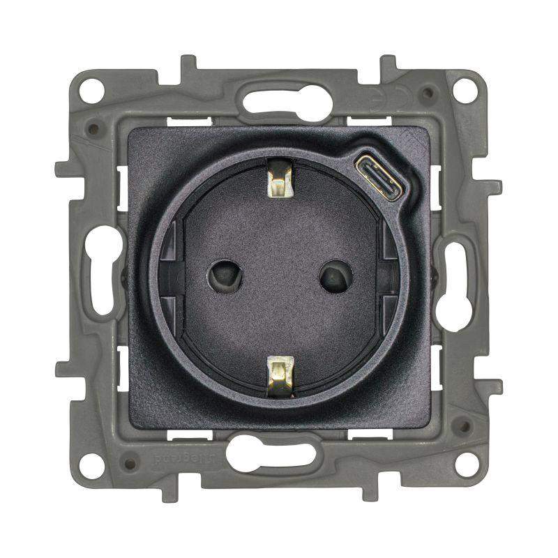 –Розетка USB C Etika 16А 250В 1500мА 7.5Вт с заземл. защ. шторки безвинт. зажимы антрацит IEK 672688