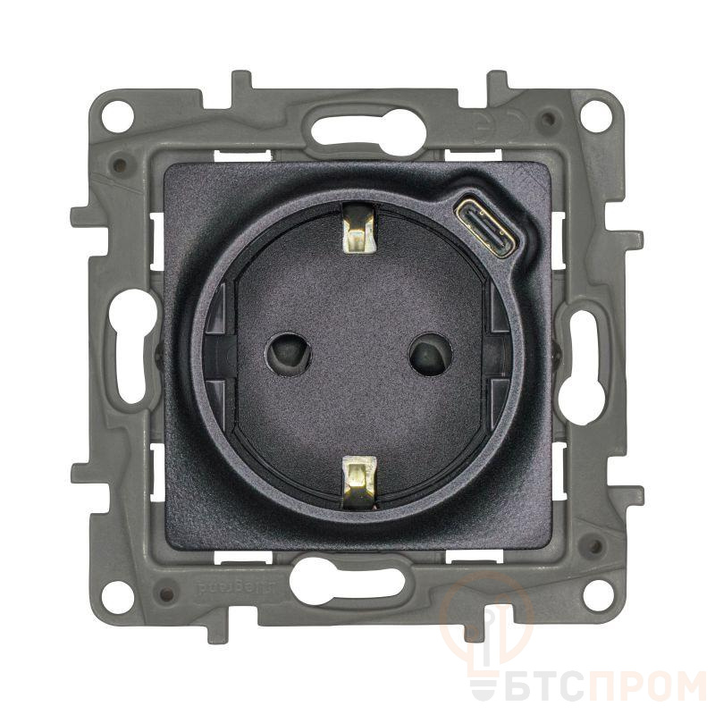 Розетка USB C Etika 16А 250В 1500мА 7.5Вт с заземл. защ. шторки безвинт. зажимы антрацит IEK 672688 фото в каталоге от BTSprom.by