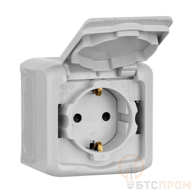 Розетка 1-м ОП Quteo 16А с защ. крышкой защ. шторки с заземл. IP44 сер. Leg 782351 представляет собой электроустановочный механизм одноместной розетки. Изготовлен из пластика, квадратной формы, со стороной, равной 70 мм, белого цвета. Предусмотрены защитные шторки, автоматически закрывающие гнезда розетки при вынутой вилке, и крышка. Монтируется на глубину 57 мм, на поверхность стены.