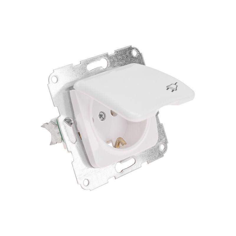 Розетка 1-м СП 16А DEA с заземл. с крышкой механизм бел. Kranz KR-78-0213