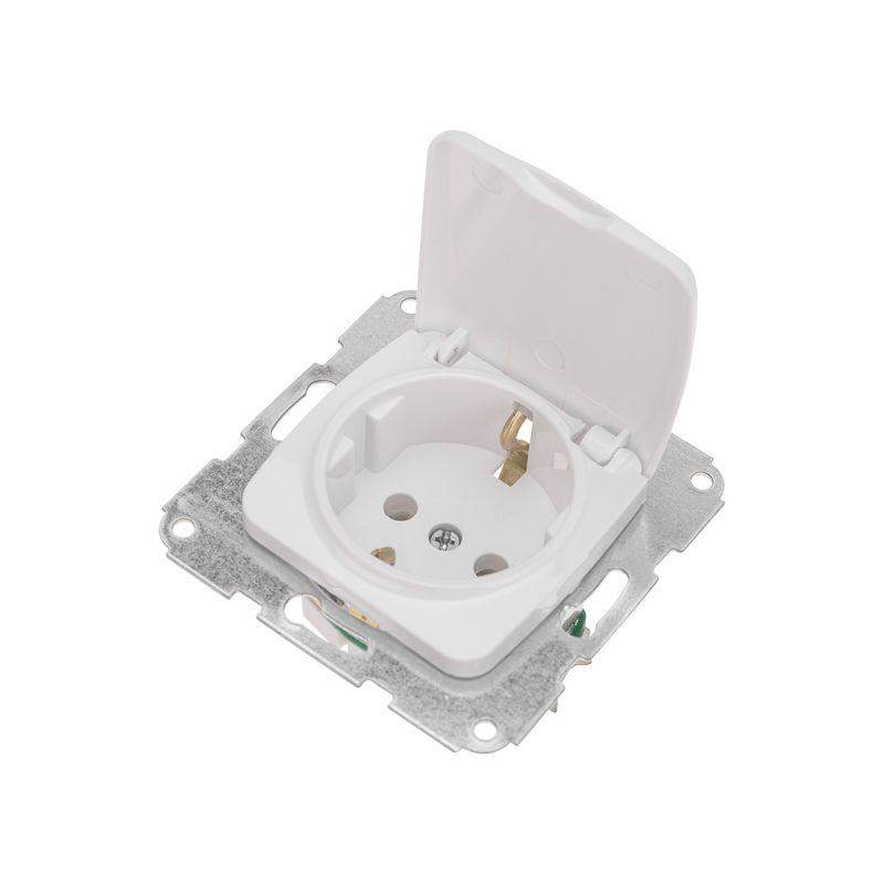 –Розетка 1-м СП 16А DEA с заземл. с крышкой механизм бел. Kranz KR-78-0213