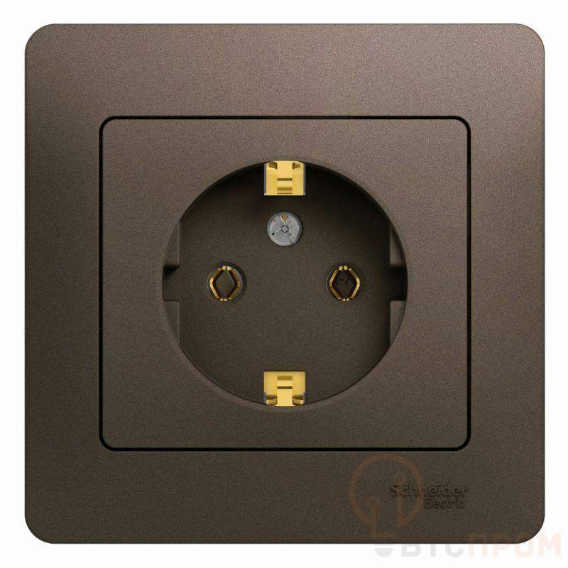 Розетка Systeme Electric (ранее Schneider Electric) серии Glossa (в сборе, цвет шоколад) одинарная с заземлением и без шторок подходит для сетей 250 В, на ток 16 А. - Выполнен из материала PС+ASA, стойкого к УФ-излучению и появлению царапин. - Эргономичные клеммы розеток расположены в один ряд.