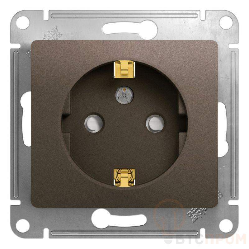Механизм Systeme Electric (ранее Schneider Electric) серии Glossa (цвет шоколад) розетки одинарной с заземлением и шторками подходит для сетей 250 В, на ток 16 А. - Заземляющий контакт обеспечивает дополнительную защиту от удара электрическим током. При наличии заземления электрический потенциал уходит в землю, защищая человека. - Выполнен из материала PС+ASA, стойкого к УФ-излучению и появлению царапин. - Эргономичные клеммы розеток расположены в один ряд.