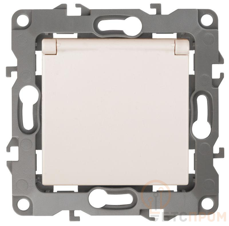 Розетка 2P+E Schuko со шторками с крышкой, 16А-250В, б.л., Эра12, слоновая кость