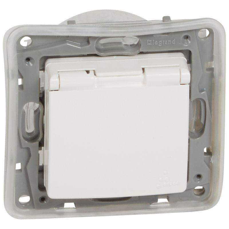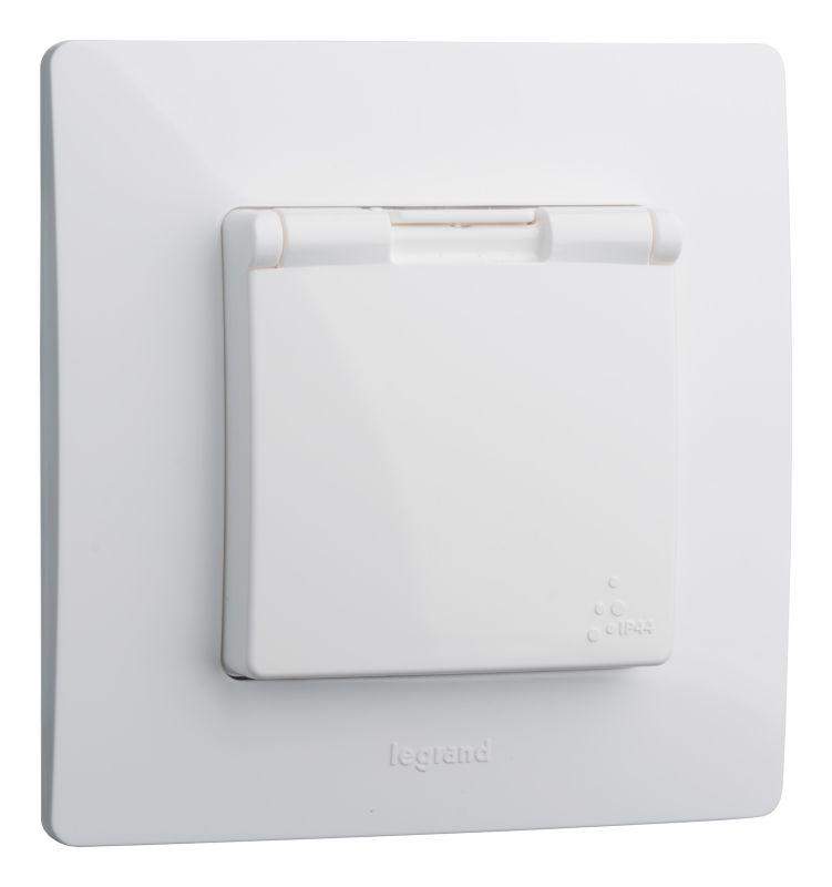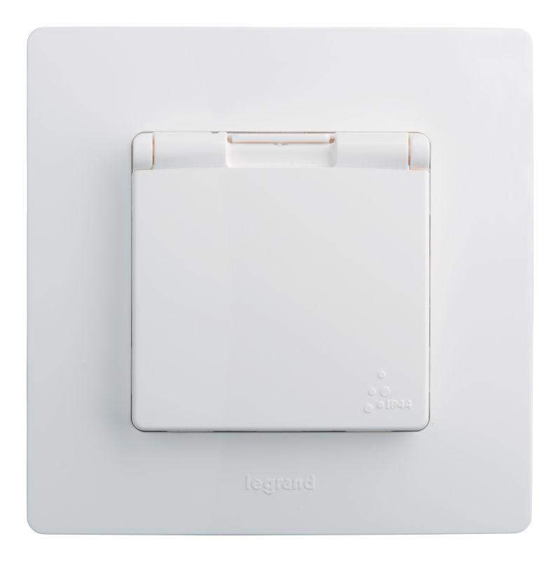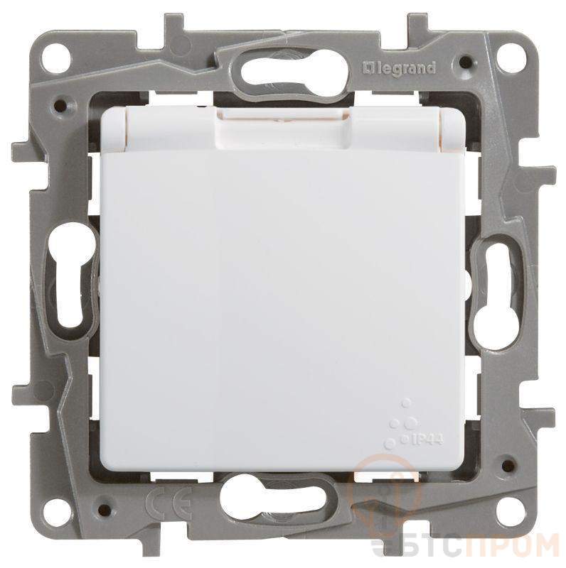 Розетка 1-м СП Etika 16А IP44 250В 2P+E с заземл. защ. шторки с крышкой немецк. стандарт безвинтов. клеммы механизм бел. Leg 672232