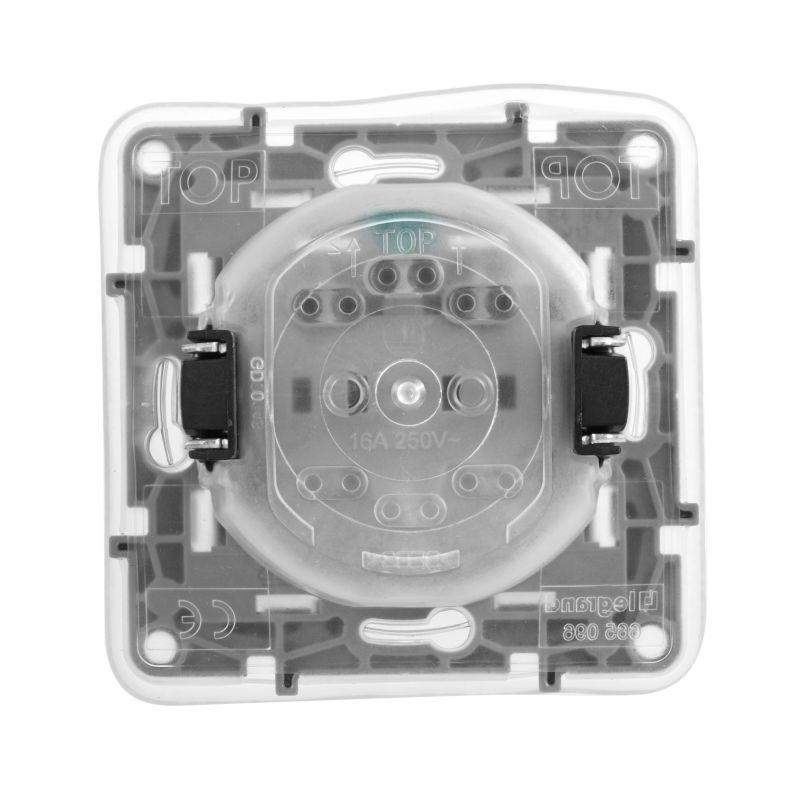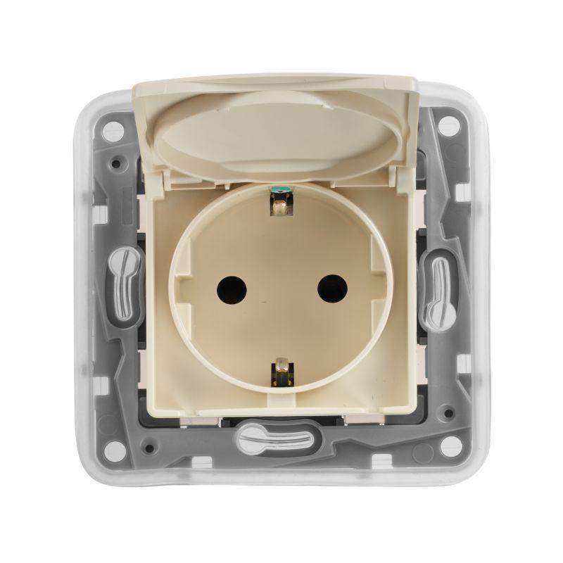 Розетка 1-м СП Etika 16А IP44 2P+E с заземл. защ. шторки с крышкой немецк. стандарт безвинтов. клеммы механизм сл. кость Leg 672332