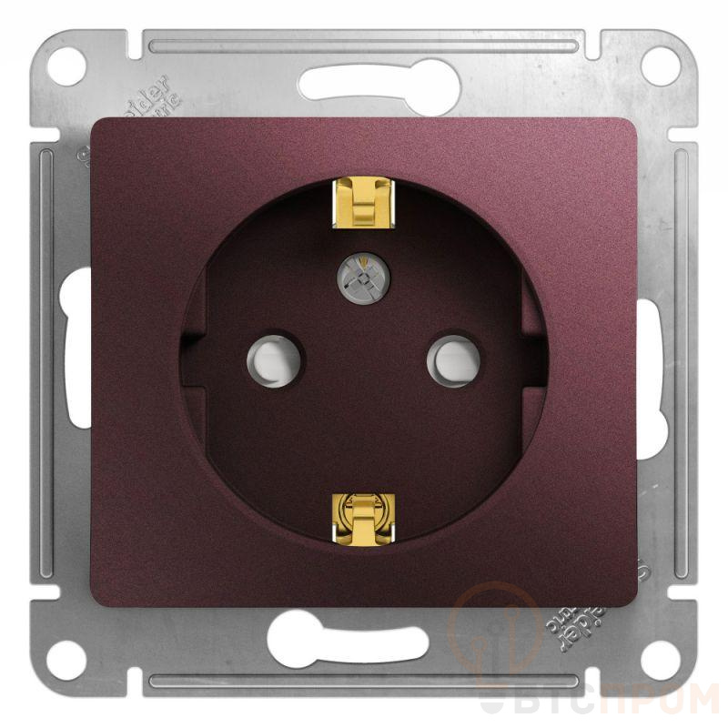 Механизм Systeme Electric (ранее Schneider Electric) серии Glossa (цвет баклажановый) розетки одинарной с заземлением и шторками подходит для сетей 250 В, на ток 16 А. - Заземляющий контакт обеспечивает дополнительную защиту от удара электрическим током. При наличии заземления электрический потенциал уходит в землю, защищая человека. - Выполнен из материала PС+ASA, стойкого к УФ-излучению и появлению царапин. - Эргономичные клеммы розеток расположены в один ряд.