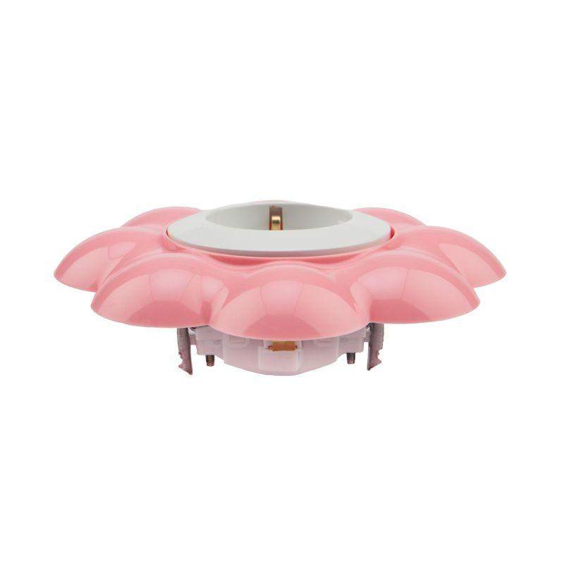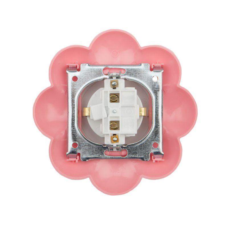 Розетка 1-м СП HAPPY Цветок с заземл. защ. шторки бел./роз. Kranz KR-78-0625 фото в каталоге от BTSprom.by