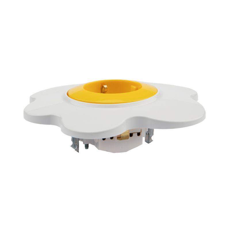 Розетка 1-м СП HAPPY Яичница с заземл. защ. шторки желт./бел. Kranz KR-78-0631