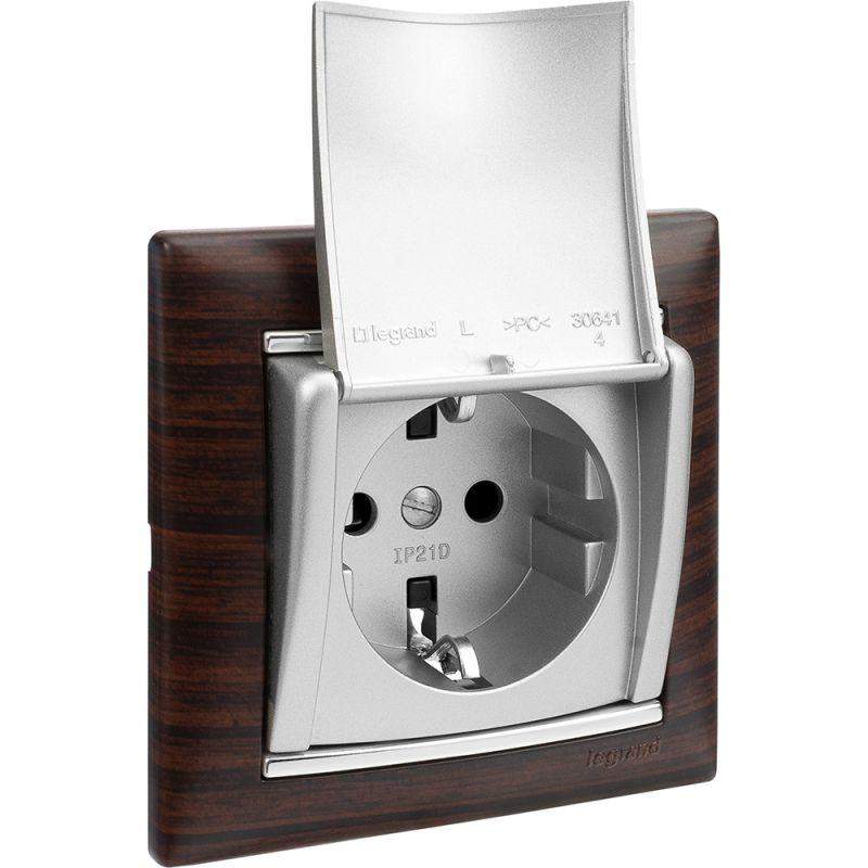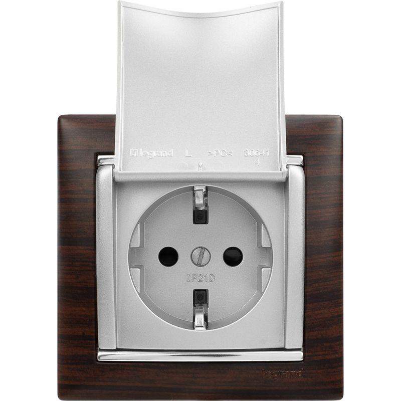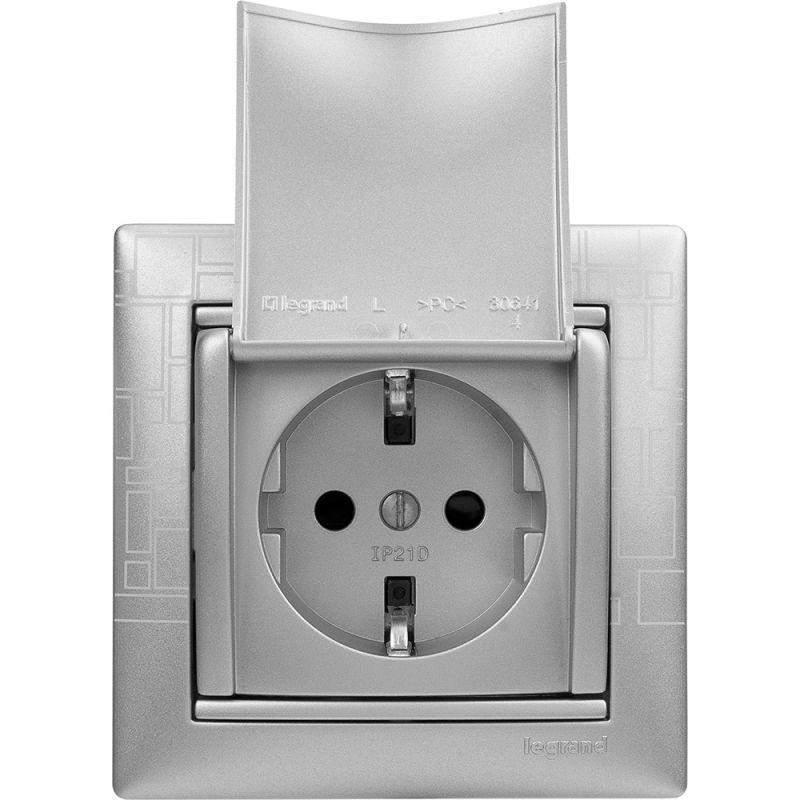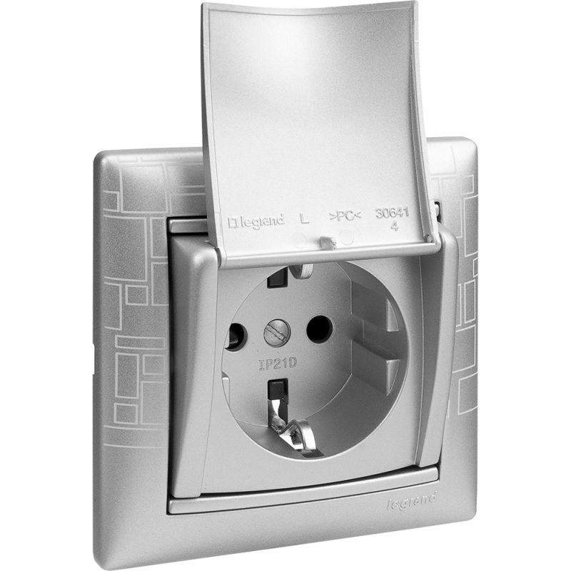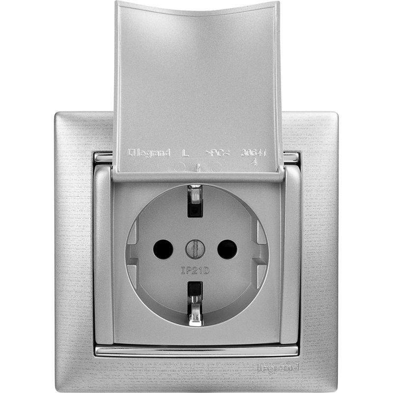 Розетка 1-м СП Valena 16А IP21 с заземл. с крышкой немецк. стандарт винты механизм алюм. Leg 770122 фото в каталоге от BTSprom.by