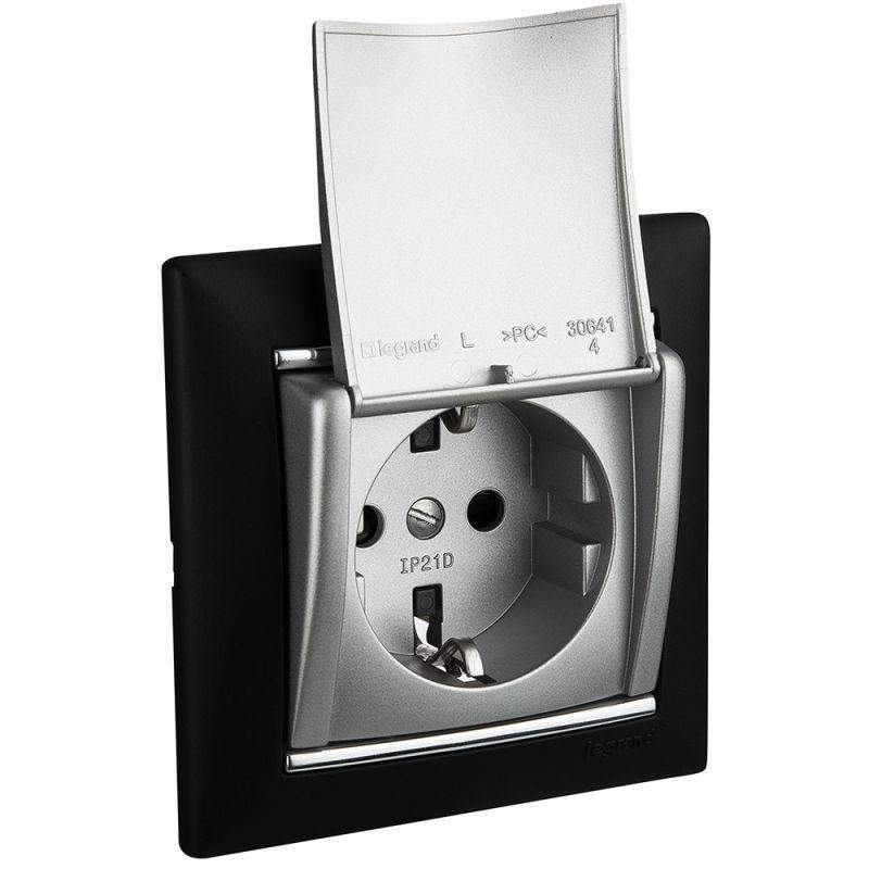 –Розетка 1-м СП Valena 16А IP21 с заземл. с крышкой немецк. стандарт винты механизм алюм. Leg 770122