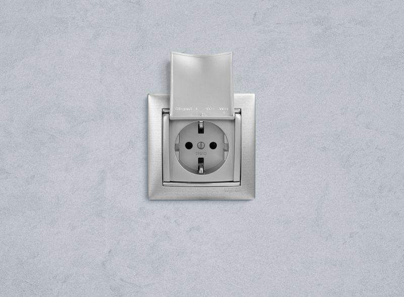 Розетка 1-м СП Valena 16А IP21 с заземл. с крышкой немецк. стандарт винты механизм алюм. Leg 770122