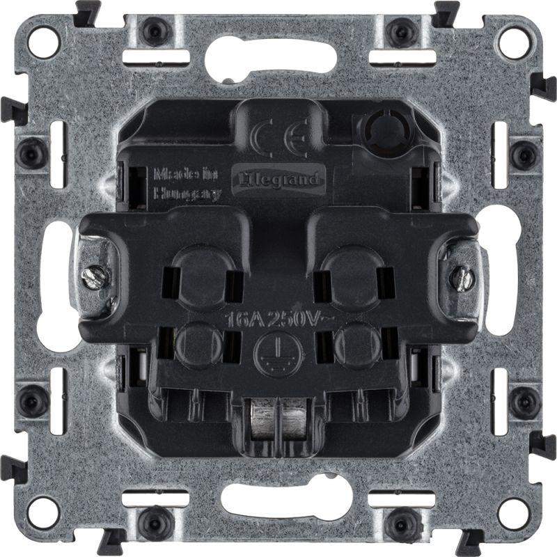 Розетка 1-м СП Valena Allure 16А IP20 250В 2P+E винтов. клеммы с лицев. панелью механизм алюм. Leg 753924