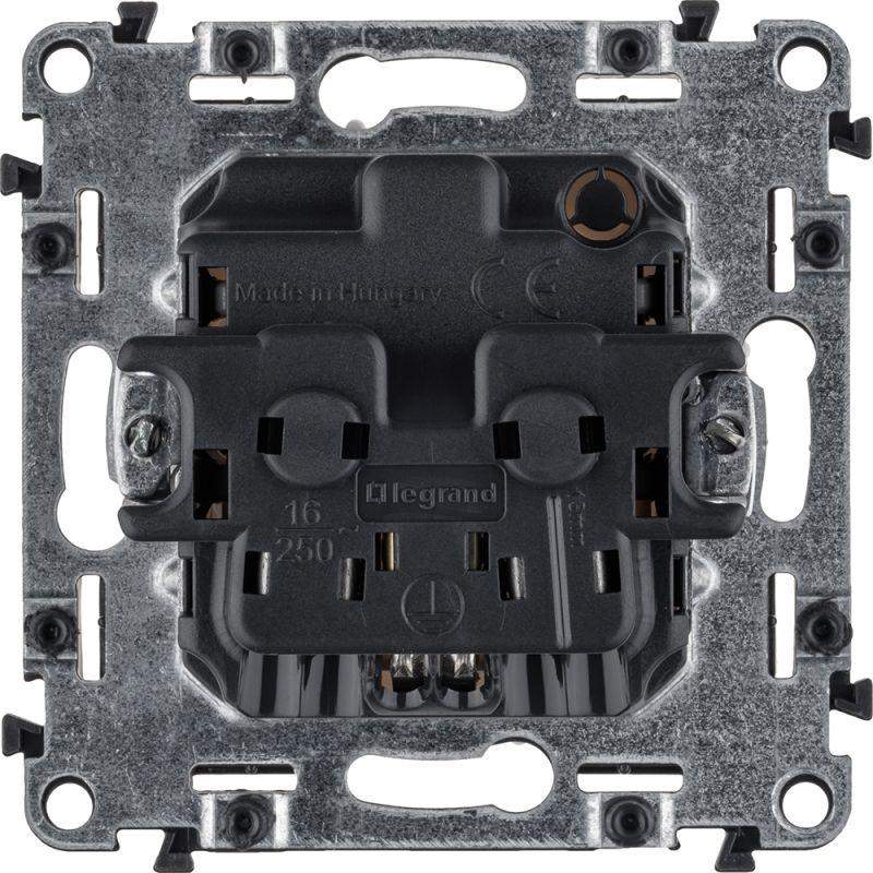 Механизм розетки Valena Allure 16А 250В 2К+З защ. шторки безвинт. зажимы с лицевой панелью бел. Leg 753720 – электроустановочный механизм. Представляет собой розетку из пластика, с лицевой панелью белого цвета, скрытой установки, монтируемый под штукатурку, на глубине не менее 40 мм. Предусмотрены защитные шторки, автоматически закрывающие гнезда розетки при вынутой вилке.