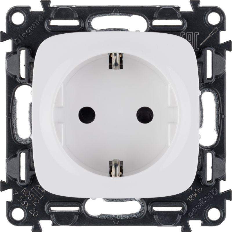 Розетка 1-м СП Valena Allure 16А IP20 250В 2P+E защ. шторки безвинтов. клеммы с лицев. панелью механизм бел. Leg 753720
