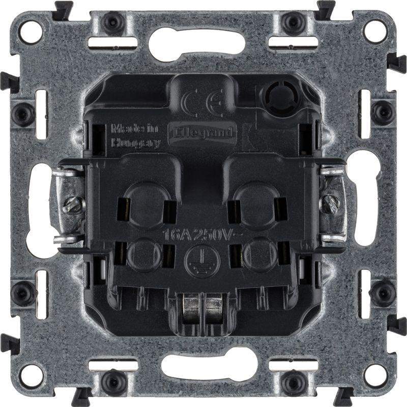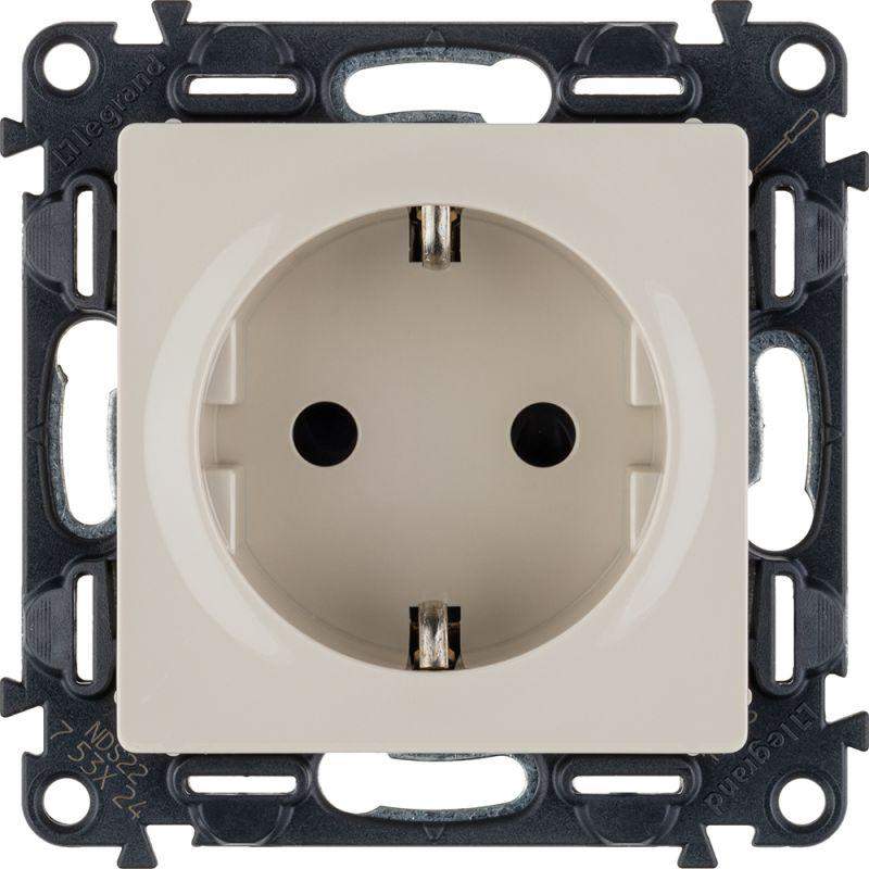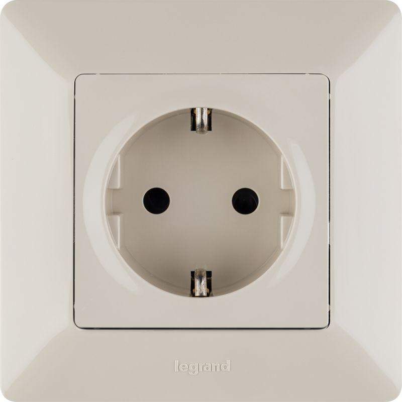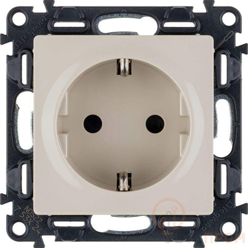 Розетка 1-м СП Valena Life 16А IP20 250В 2P+E защ. шторки винтов. клеммы с лицев. панелью механизм сл. кость Leg 753524
