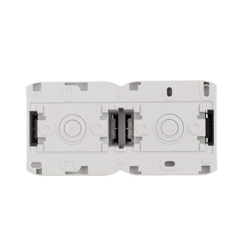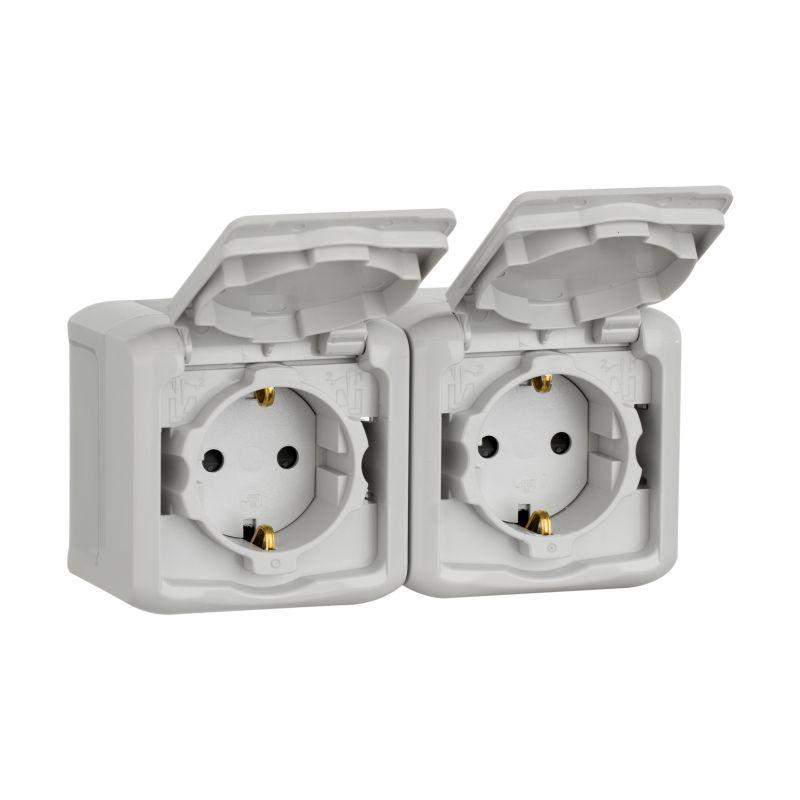 Розетка 2-м ОП Quteo 16А с защ. крышкой защ. шторки с заземл. IP44 сер. Leg 782353 была представлена потребителю в серии "Quteo" с девизом "Универсальное для всех". Двухместная розетка Quteo – это современный вариант универсального многопостового изделия в его лучшем эргономичном исполнении. Корпус изготовлен из высококачественного ударопрочного и износостойкого пластика с глянцевой поверхностью, серого цвета. Контактная группа изделий изготовлена из латуни. Винтовые клеммы защищены от прямого прикосновения (даже при снятом корпусе контакт с токоведущими элементами исключен). Усилены пластины защитного заземления для повышения надежности контакта. Конструкцией изделия гарантирована защита от попадания пыли и влаги в механизм изделия. Предусмотрены защитные шторки, автоматически закрывающие гнезда розетки при вынутой вилке, и откидная крышка. Прямоугольной формы, длиной 140 мм, серого цвета. Предназначена для накладного монтажа на кухне и в ванной, монтируется на глубину 57 мм.