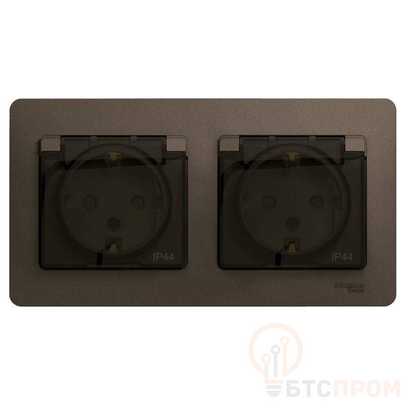 Розетка Systeme Electric (ранее Schneider Electric) серии Glossa (в сборе, цвет шоколад) двойная с заземлением, шторками и крышкой подходит для сетей 250 В, на ток 16 А. - Изделие со степенью защиты IP44 обеспечит безопасность использования в ванной и на кухне. - Заземляющий контакт обеспечивает дополнительную защиту от удара электрическим током. При наличии заземления электрический потенциал уходит в землю, защищая человека. - Выполнен из материала PС+ASA, стойкого к УФ-излучению и появлению царапин.