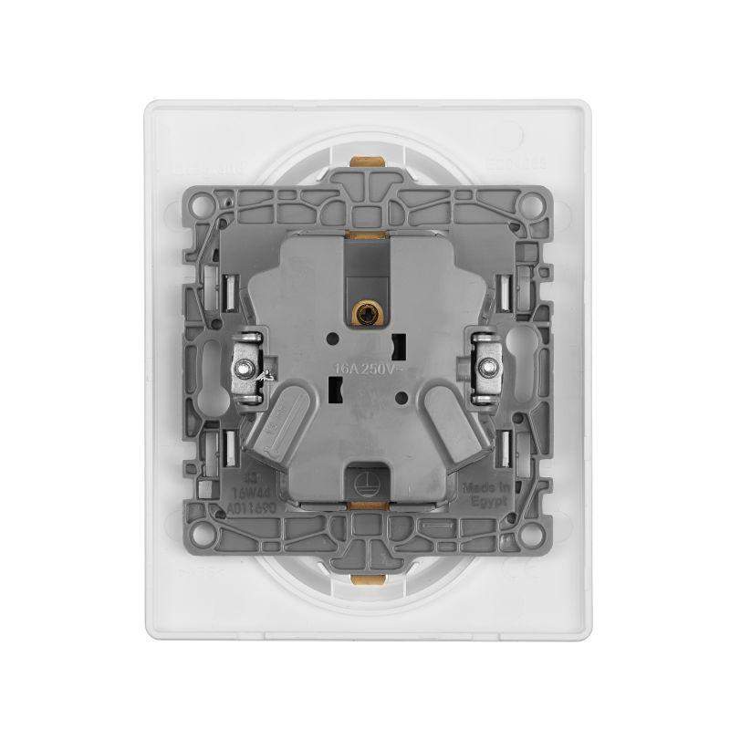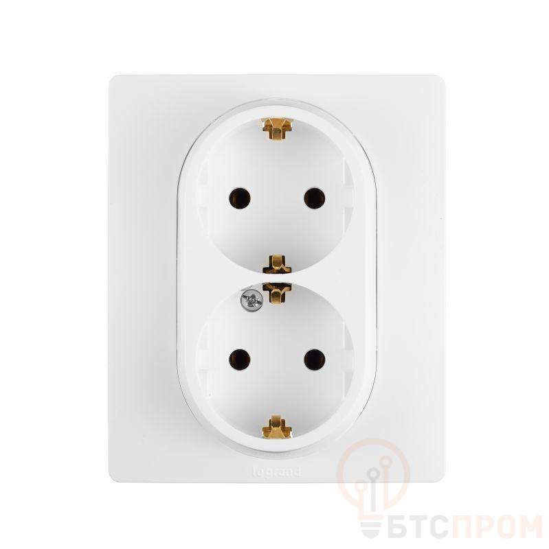 Розетка 2-м СП Etika 16А IP20 250В 2P+E с заземл. немецк. стандарт винт. клеммы в сборе бел. Leg 672223