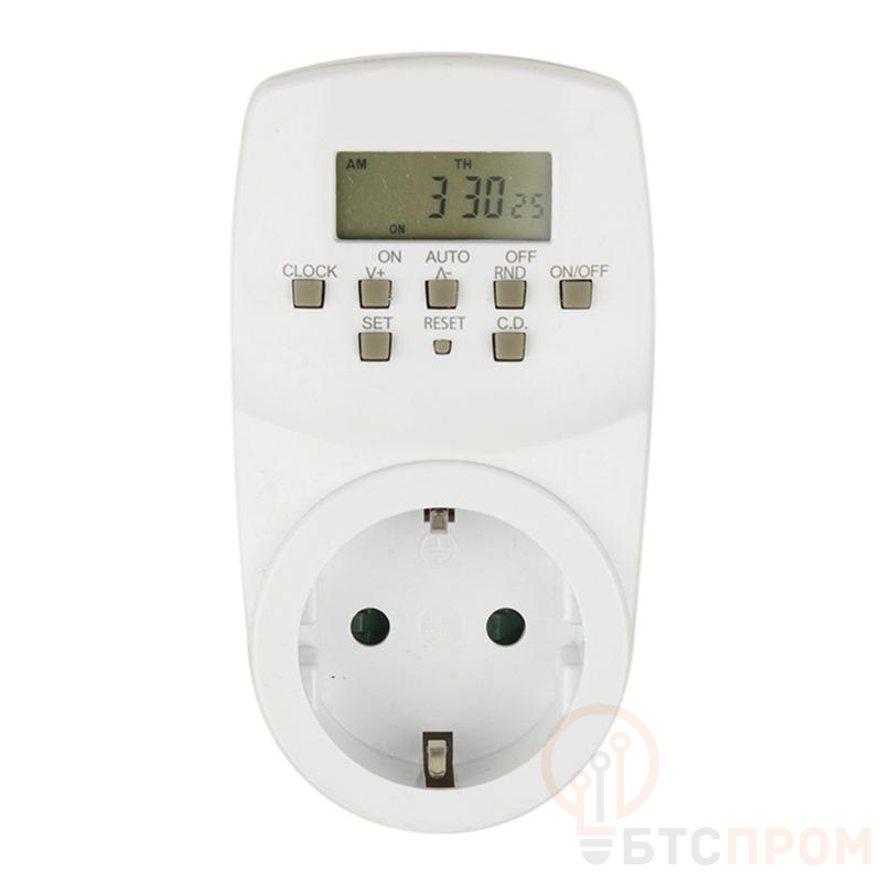 Таймер электронный с розеткой UST-E20 WHITE от Uniel предназначен для автоматического включения и выключения светильников и иных электроприборов не нагревательного типа по заданному расписанию. Используется для управления работой фитосветильников, аквариумов, освещения теплиц, птичников и многое другое. Рассчитан на максимальную мощность нагрузки 1600 Вт/7А. Таймер имеет 20 интервалов установки времени, причем можно задавать установки и по времени и по дням недели. Встроенный аккумулятор обеспечивает энергонезависимую память, что позволяет не сбиваться настройкам при скачках напряжения или отключении электричества. Позволяет создавать различные программы управления, может использоваться как часы. Корпус таймера выполнен из прочного белого пластика и имеет стильный внешний вид. Степень защиты IP20. Габариты изделия 69х60х110 мм. Вес 155 гр. Гарантия от производителя 1.5 года.