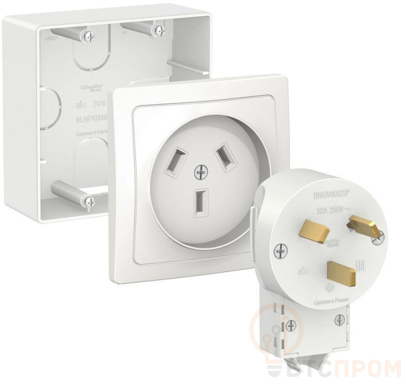 Комплект силовой ОП Blanca BLNSK003231 — это надежное решение для подключения мощного электрооборудования. Комплект включает подъемную коробку, розетку и вилку на 32А 250В, выполненные в прочном белом корпусе из ударопрочного пластика.